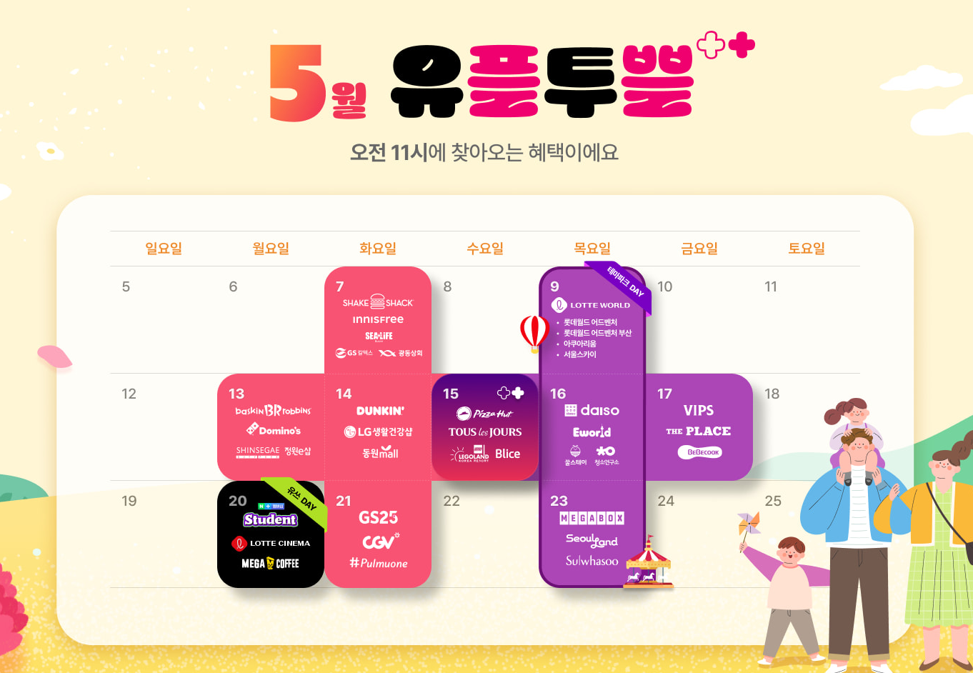 혜택에 혜택을 더해(+) 5월에도 찾아온 유플투쁠놀이공원, 나들이 갈 땐 유플투쁠이지! 멤버십 혜택 즐기고 유플투쁠 PLAY로 같이 놀자! ⠀ Play 01 찾아라! 유플투쁠 챌린지 참여만 해도 다이소 쿠폰 100% 당첨 일상 속 멤버십 혜택을 찾아라! 혜택만 찾으면 이무진 LIVE 직관 기회까지? ⠀ Play 02 잭팟_이모지? 터져라 잭팟! 이모지 퀴즈 맞히면 에어팟 맥스의 주인공이 내가 될 수도?! 참여자 전원에게 U⁺콕 쿠폰을 드려요! ⠀ 기간: 2024년 5월 7일(화) - 5월 31일(금) 당첨자 발표: 6월 7일(금) 지금 혜택 받고 이벤트 참여하기: https://bit.ly/3QvqWIc